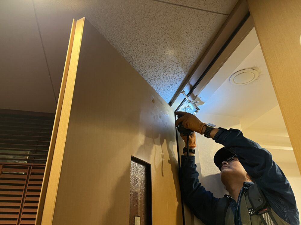 現場は築22年のタワーマンション。天井が高く、ドアの高さが約2m70cmと一般住宅よりも大型の仕様でした。