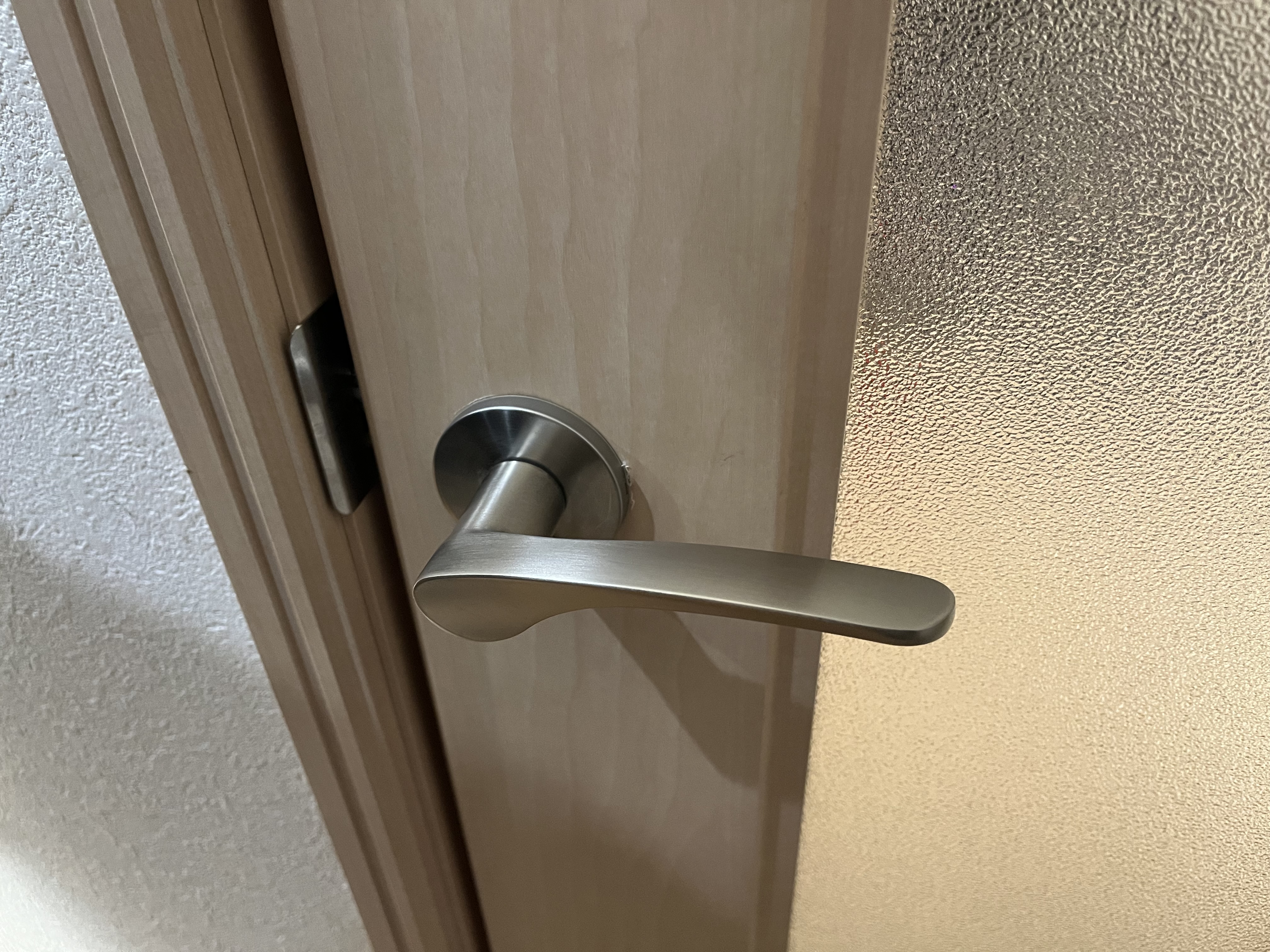 - ドアノブを閉めても保持点が定まらず、少し押せば開いてしまう