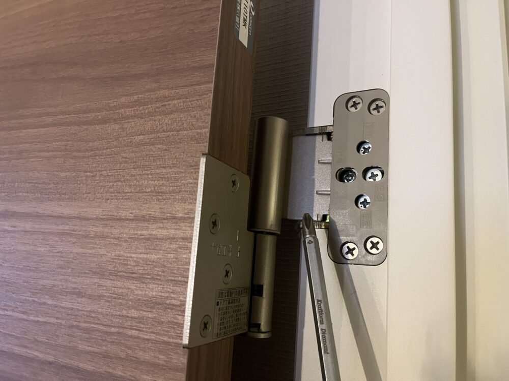 特に築年数が経った住宅では、ネジや蝶番自体が劣化しているケースが多く、ドライバーの種類や力加減を間違えると、すぐにネジ山を潰してしまいます。実際、今回もご自身で調整した際にネジ山が悪化し、より厳しい状態になっていました。