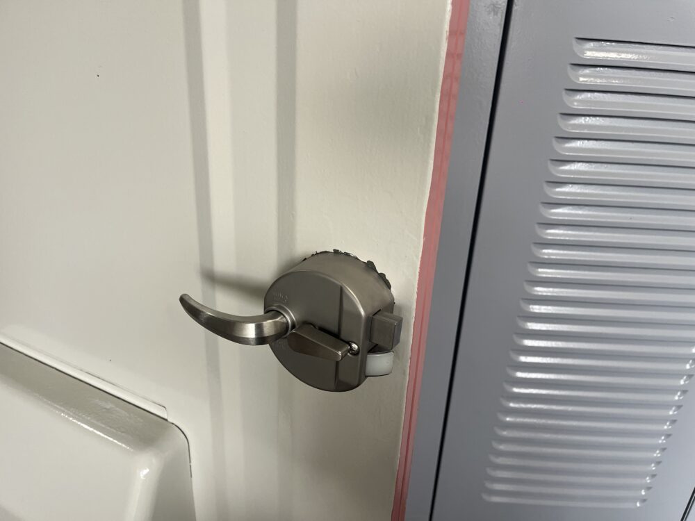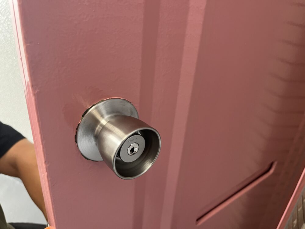 新しい本体とシリンダーを取り付ける際には、ドア枠とのかみ合わせを微調整し、スムーズに開閉できるように位置を調整しました。