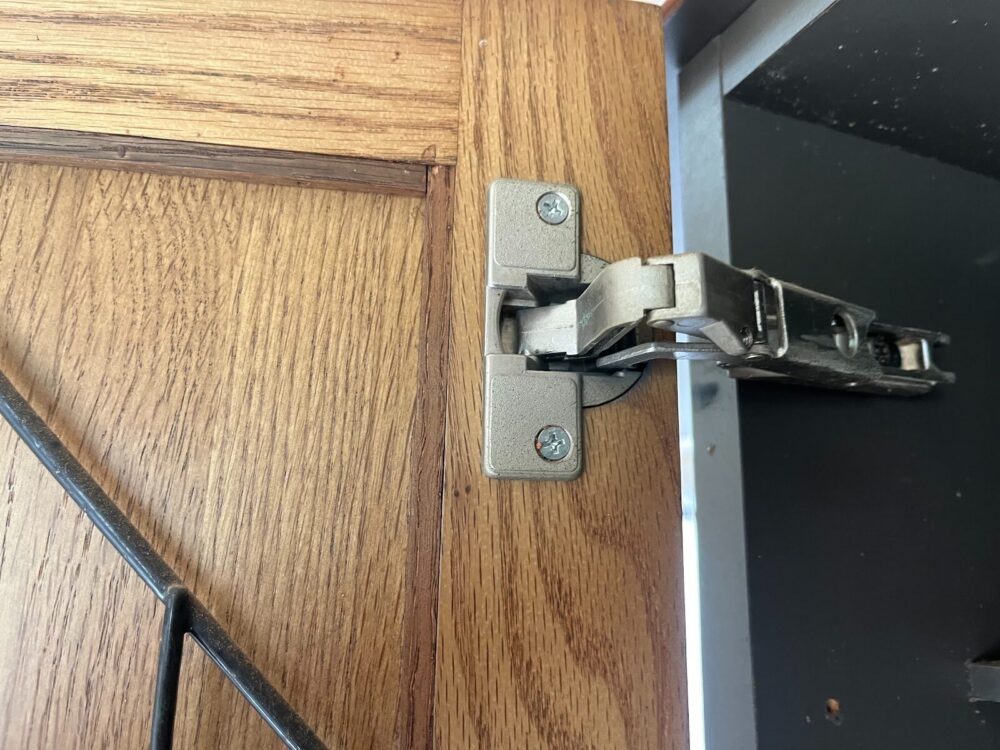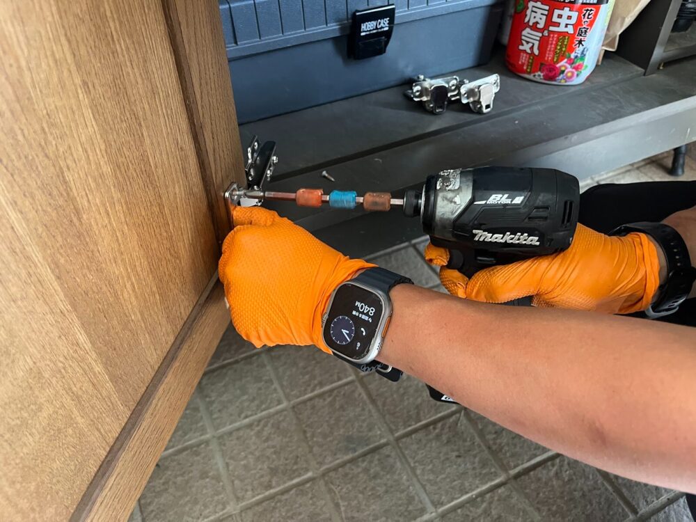 長年の使用で蝶番が歪み、扉がかみ合わなくなり、開け閉めのたびに引っかかりが出ていました。