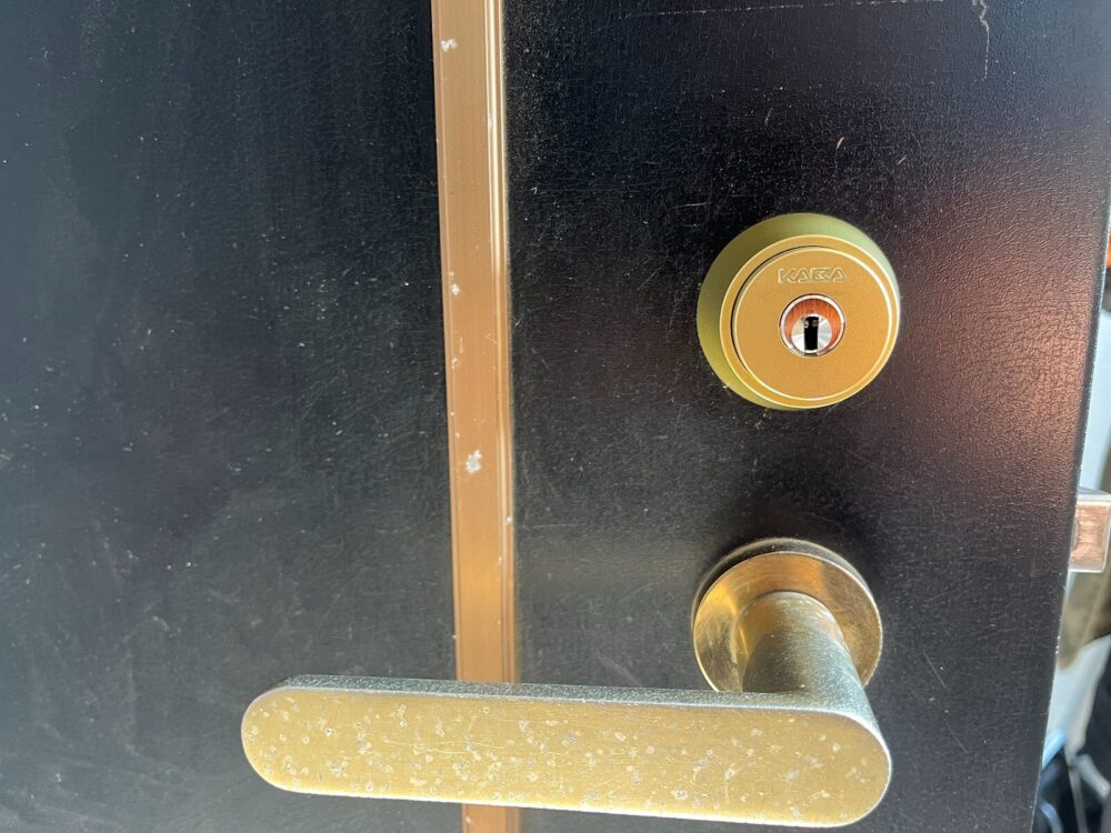 K様のご要望に沿い、ゴールド仕様のシリンダーを選定。新しい鍵は3本お渡ししました。