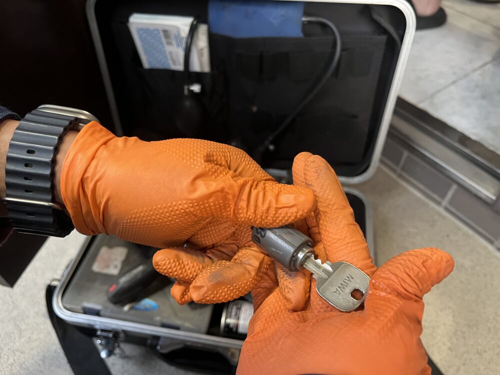 現場に到着して確認すると、鍵穴に黒い金属粉が溜まっている状態。