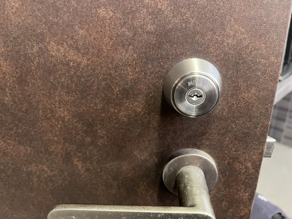 お客様が翌年に大規模修繕でドア交換予定とのことで、今回は応急処置としてギザギザタイプのシリンダー交換(約18,000円)を実施。内部をばらして清掃後、金属粉をすべて除去し、新しいシリンダーを取付けて動作確認。