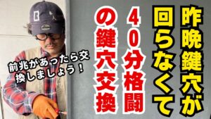 まず入口の引き戸。通常、引き戸は左右両方の扉が外れないとシリンダー交換が難しく、場合によっては作業が困難になることもあります。今回の引き戸も歪みがあり、片側が外しにくい状態でした。