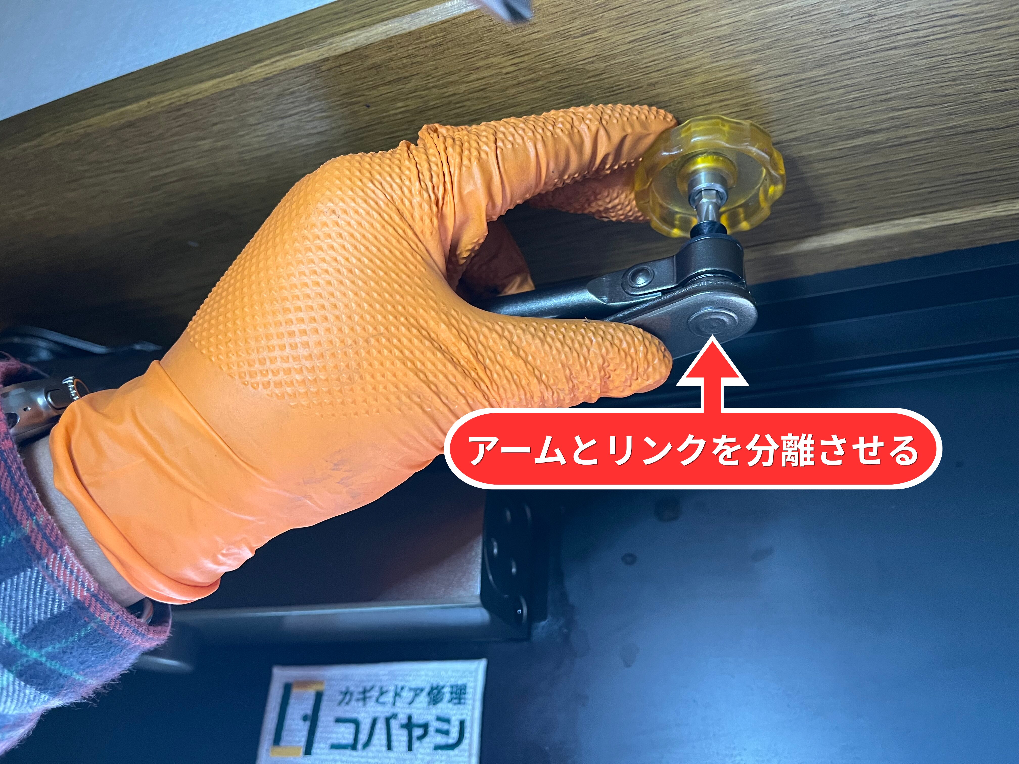 【取り外し手順2】でアームとリンクがドア枠との干渉やネジの固着などで分離できない場合があると記述しました。