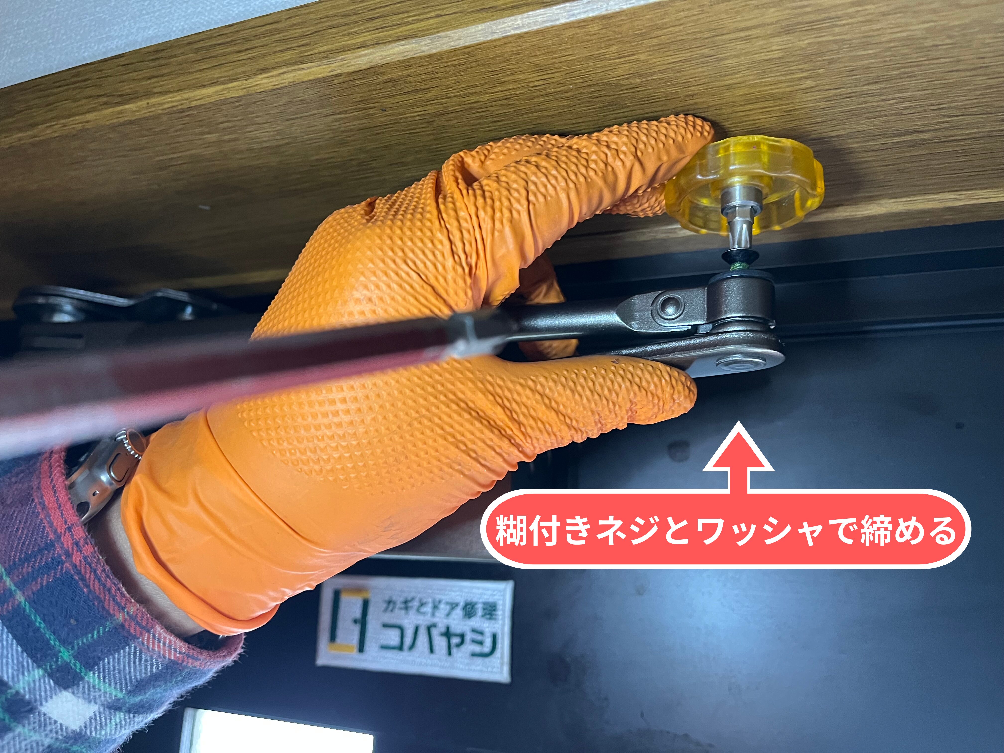 全ての取り付けが完了したら、リンクとブラケットの接続部分を本締めします。