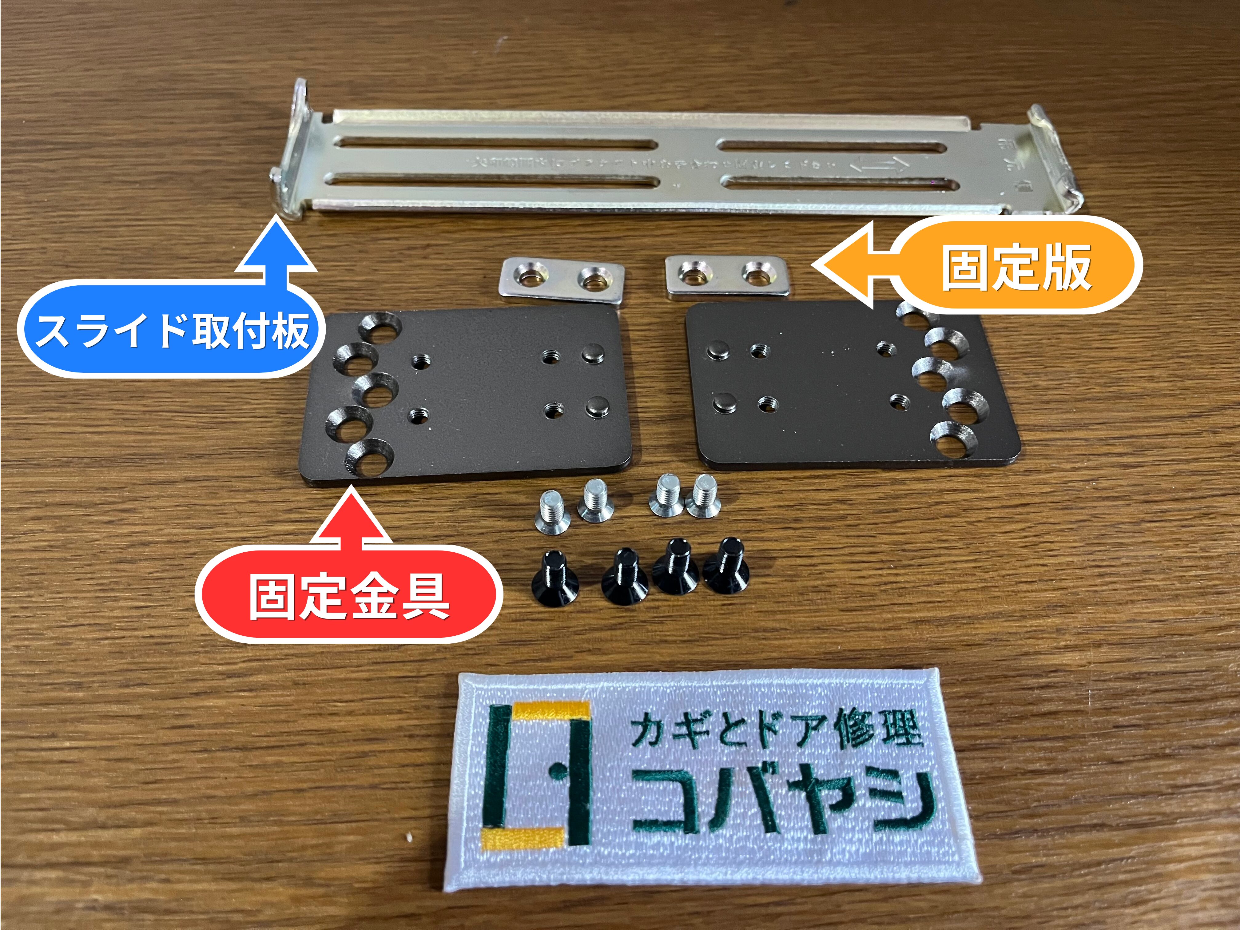 ブラケットを取り付けたら、次はドア側の取付板や台座を付けます。