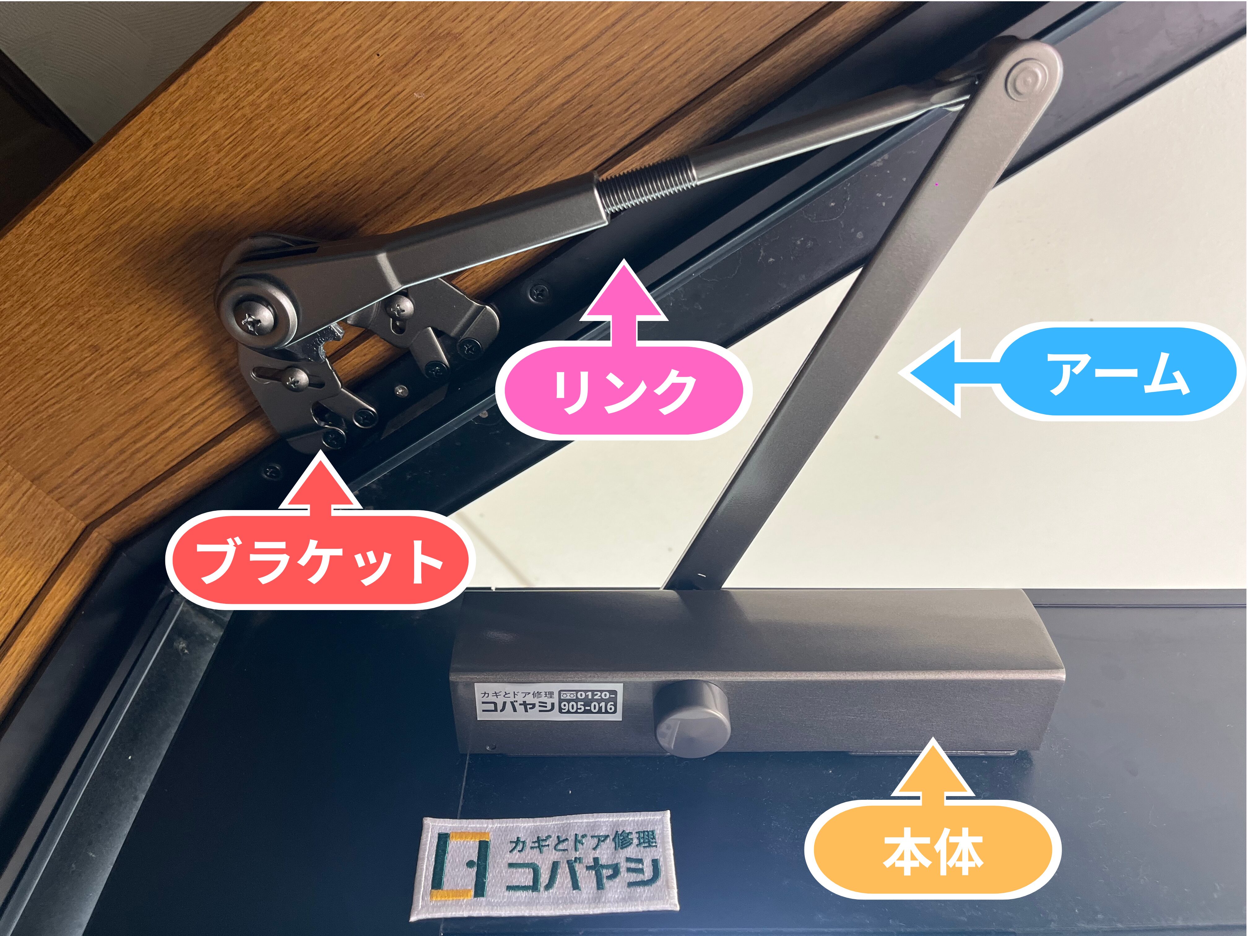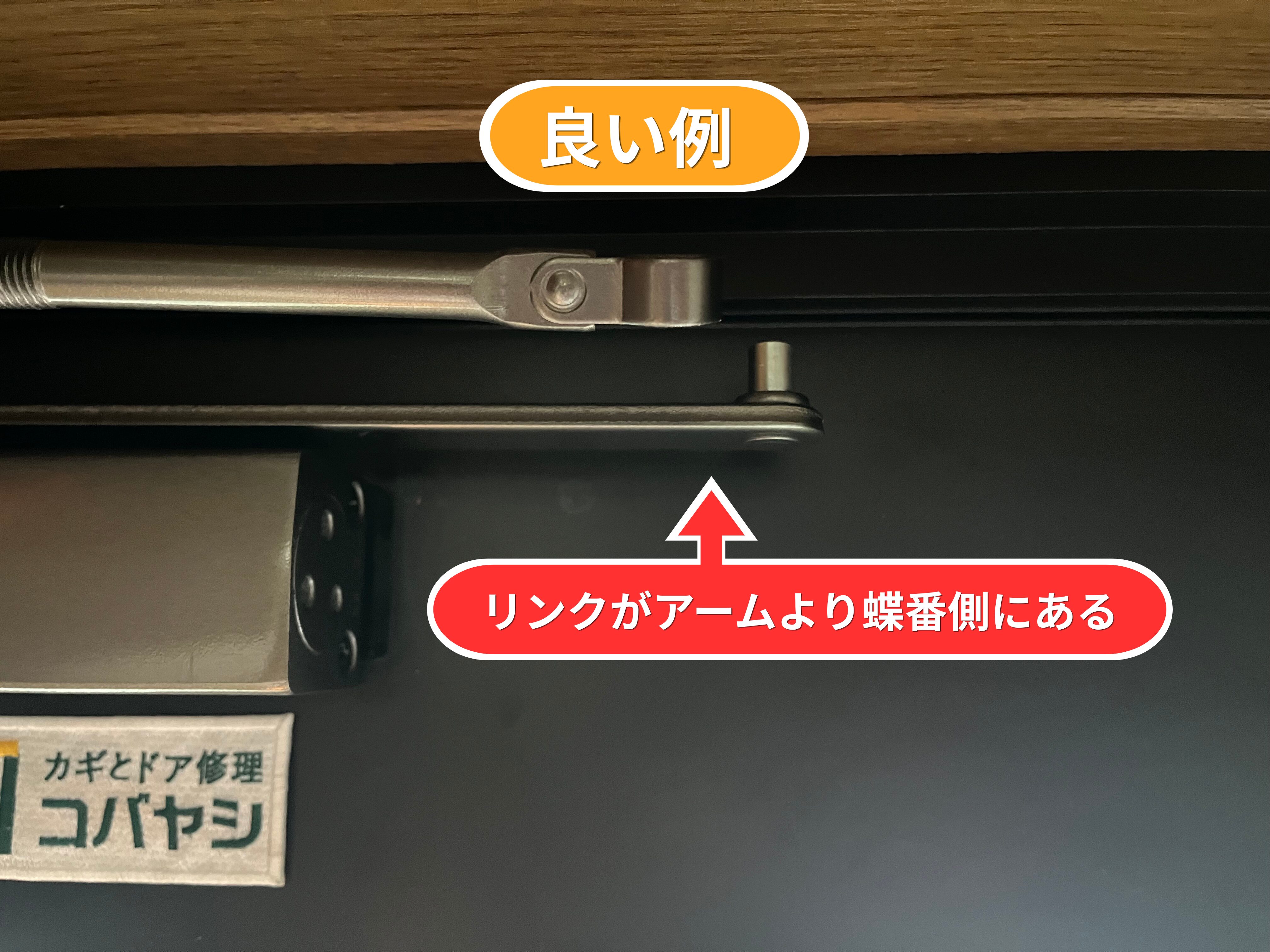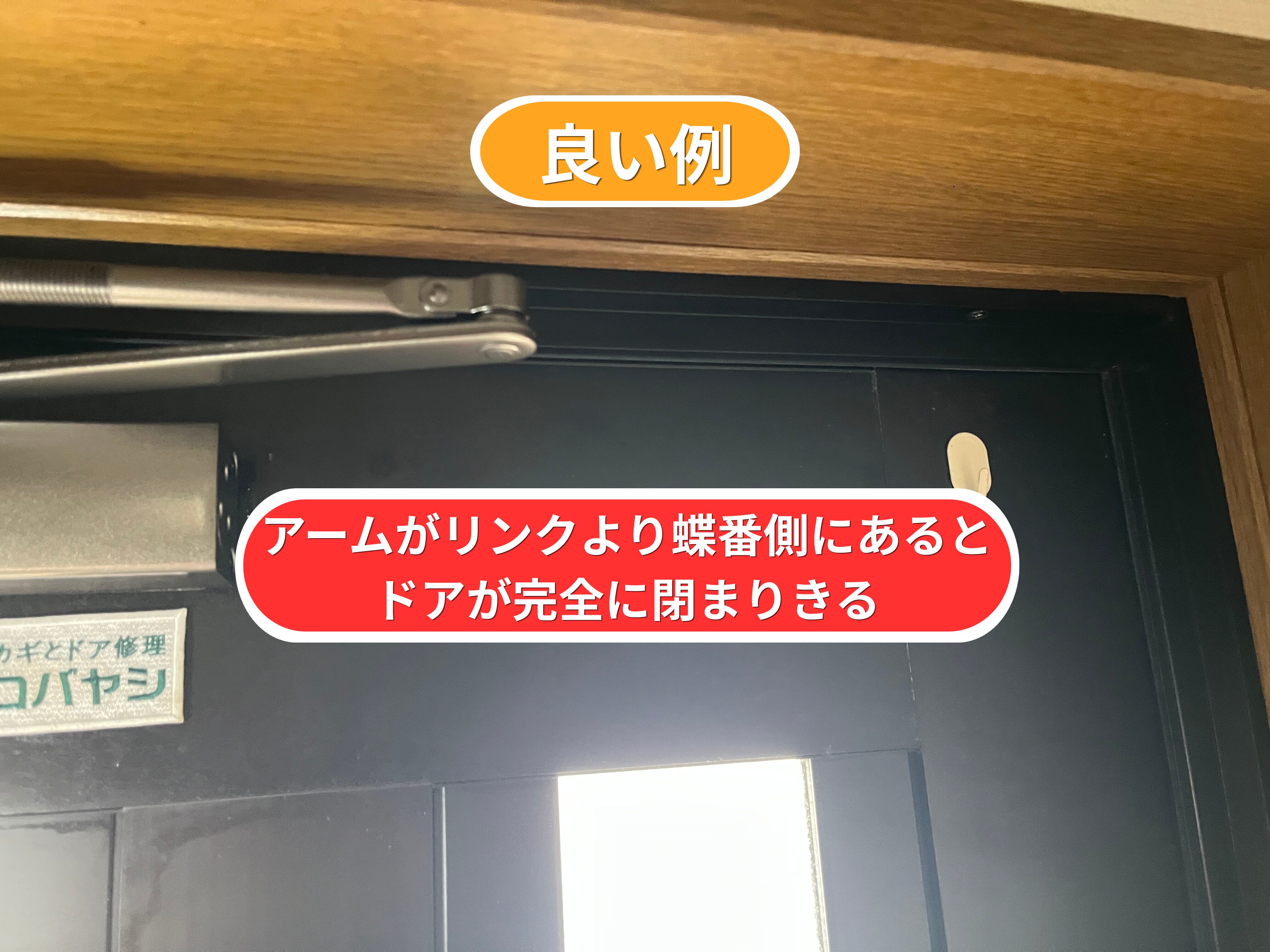 アームとリンクの位置関係がいいとドアは最後まで閉まります。