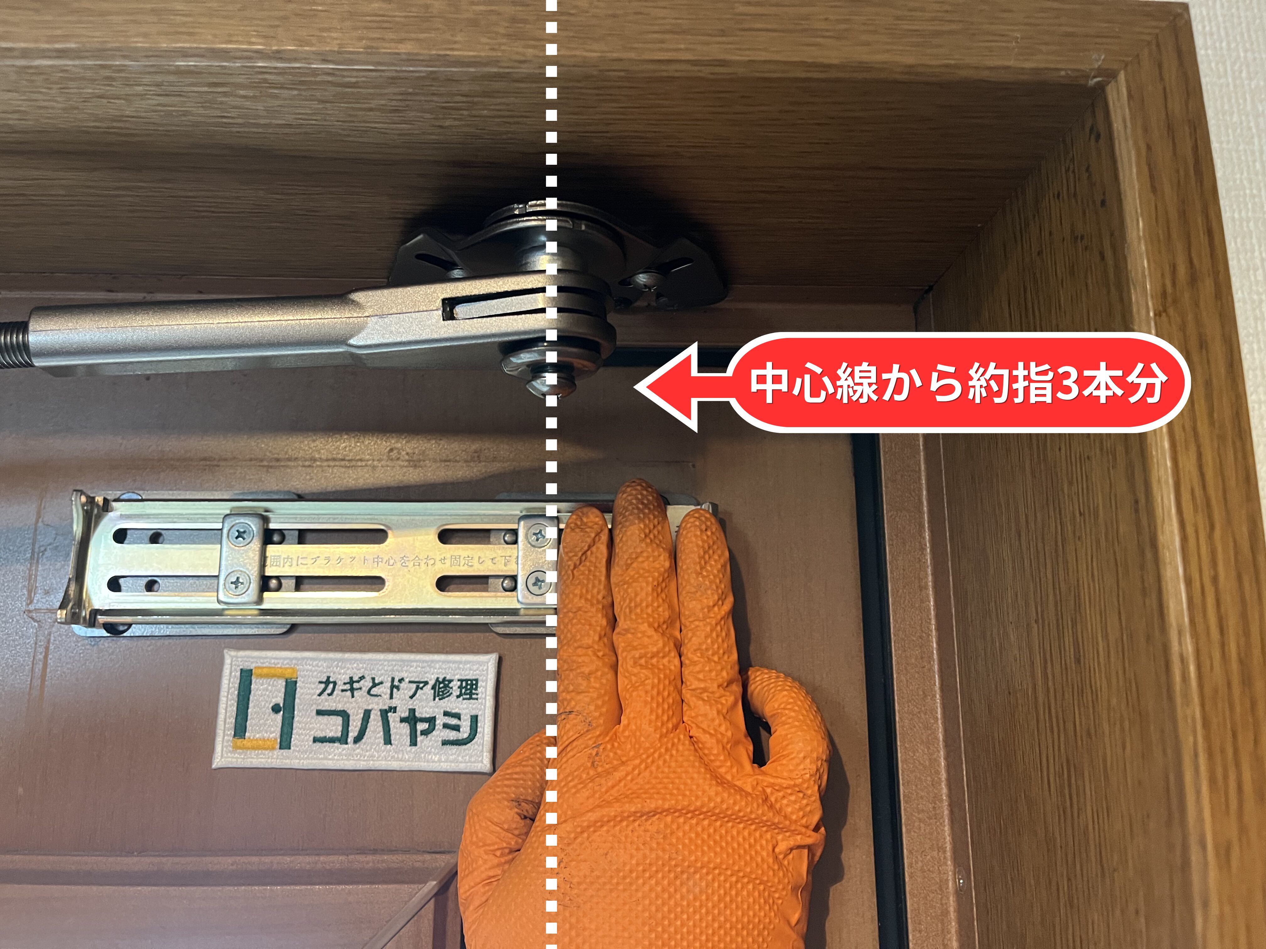 ここで斜めに付くと、あとでアームやリンクの角度が不自然になって、閉まり方がおかしくなります。